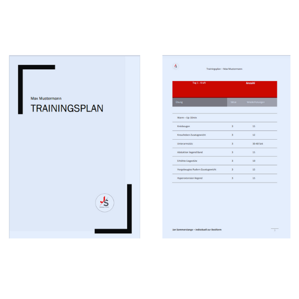 Hier bekommst du deinen individuellen Trainingsplan. Alles ist perfekt auf dich abgestimmt, damit du den Plan eigenständig durchführen kannst – bei Fragen bin ich immer für dich da. Dafür brauchst du nichts als ein Handy oder dein Laptop und wir können online starten.